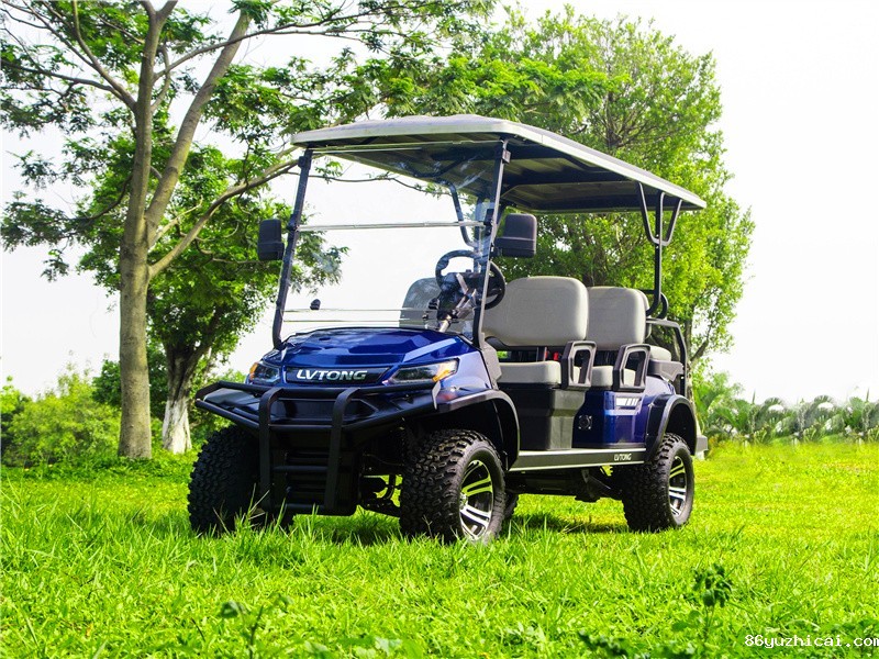 使用场景及特点:越野高尔夫球车具备强劲动力、高通过性和良好的操控性等特点。它能适应各种复杂地形,如草地、沙地等。使用场所除了高尔夫球场,还常见于野外露营地、大型庄园等。在这些地方,它能为人们带来便捷的交通,同时增添一份冒险与乐趣。